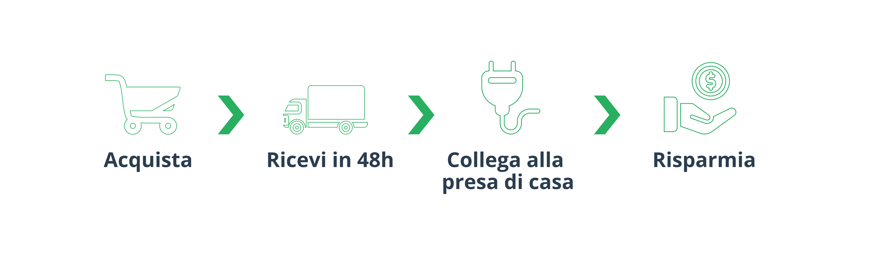 Dimentica gli appuntamenti con tecnici e lunghe attese. Il kit Sunlight si installa in pochi minuti: basta collegarlo a una presa di corrente e sei pronto a produrre energia.